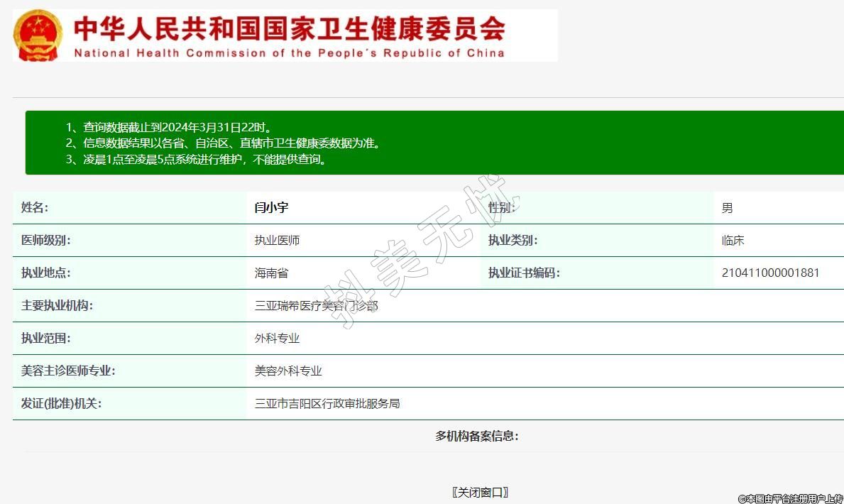 主要執(zhí)業(yè)機(jī)構(gòu):三亞瑞希醫(yī)療美容門診部