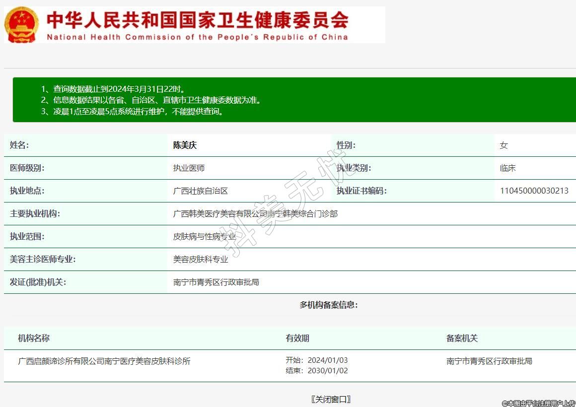 主要執(zhí)業(yè)機構(gòu):廣西韓美醫(yī)療美容有限公司南寧韓美綜合門診部