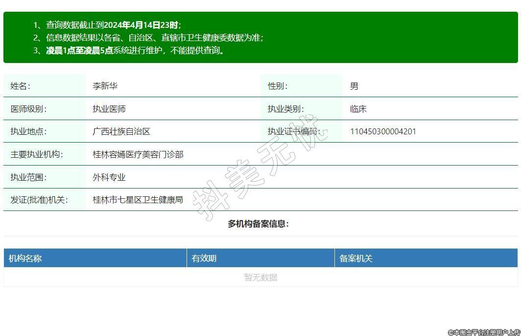 主要執(zhí)業(yè)機構(gòu):桂林容嫣醫(yī)療美容門診部