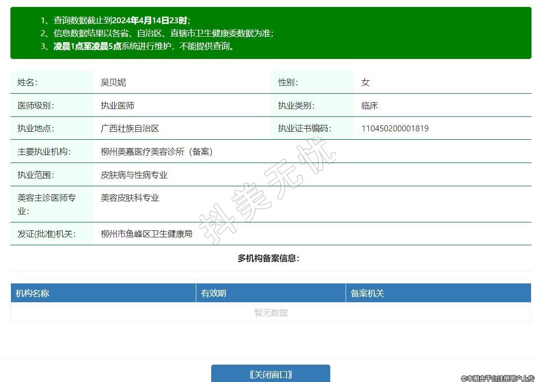 主要執(zhí)業(yè)機(jī)構(gòu):柳州美嘉醫(yī)療美容診所(備案)