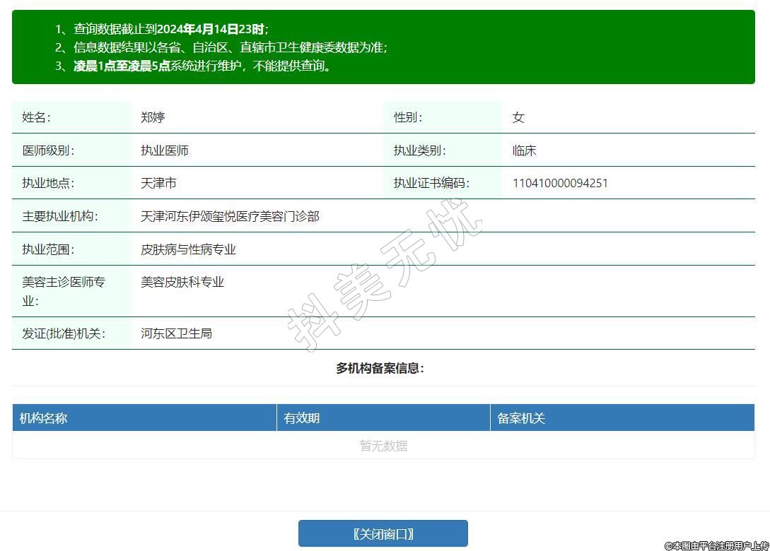 主要執(zhí)業(yè)機構(gòu):天津河東伊頌璽悅醫(yī)療美容門診部
