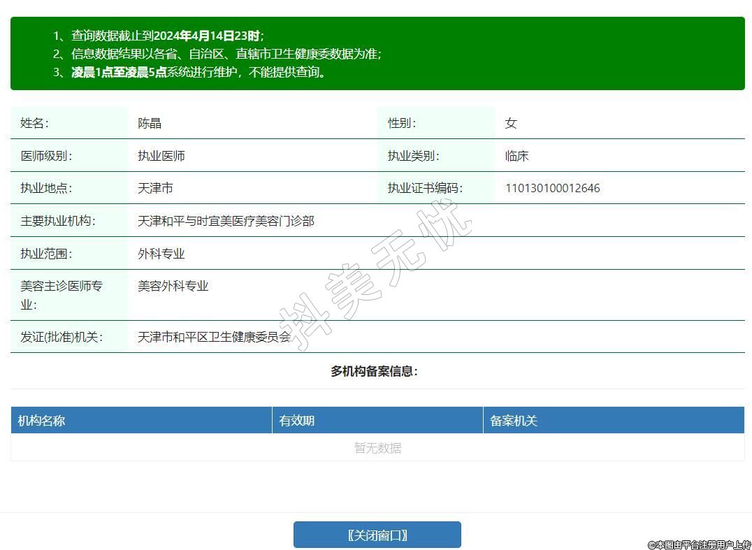 主要執(zhí)業(yè)機(jī)構(gòu):天津和平與時(shí)宜美醫(yī)療美容門診部