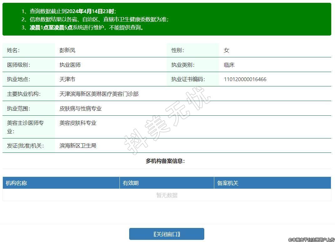 主要執(zhí)業(yè)機(jī)構(gòu):天津?yàn)I海新區(qū)美琳醫(yī)療美容門診部