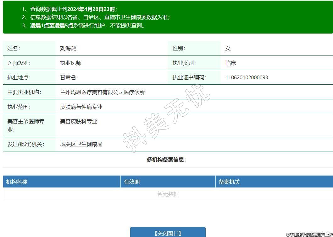 主要執(zhí)業(yè)機(jī)構(gòu):蘭州瑪恩醫(yī)療美容有限公司醫(yī)療診所