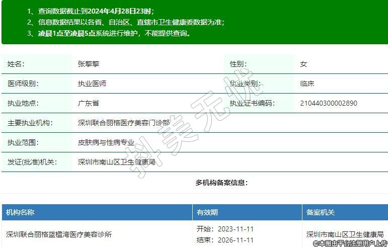主要執(zhí)業(yè)機構(gòu):深圳聯(lián)合麗格醫(yī)療美容門診部