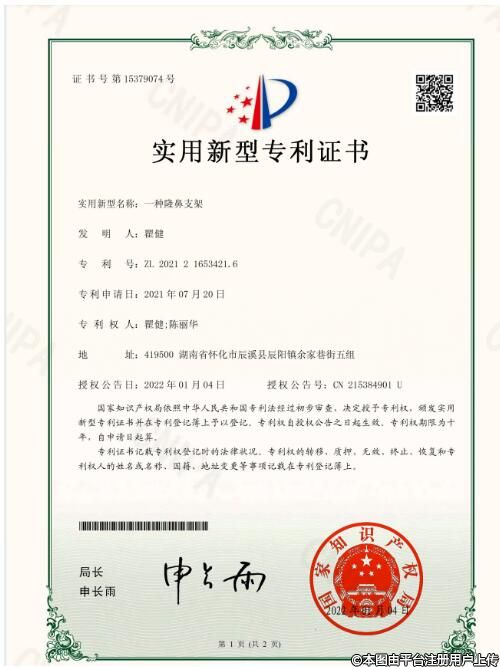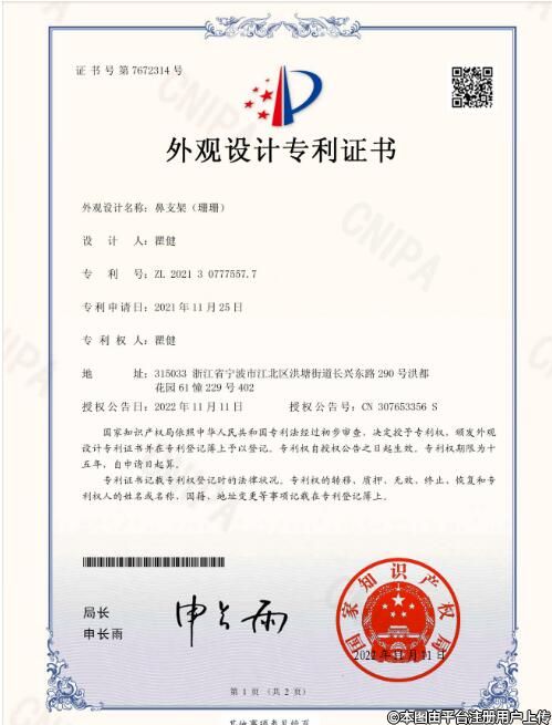 鼻支架外觀設(shè)計(jì)專利持有者