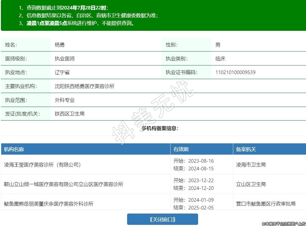 主要執(zhí)業(yè)機構:沈陽鐵西楊勇醫(yī)療美容診所