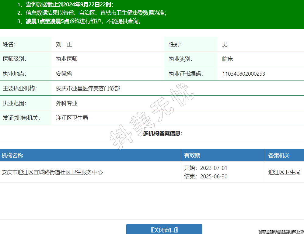 主要執(zhí)業(yè)機(jī)構(gòu):安慶市亞星醫(yī)療美容門診部