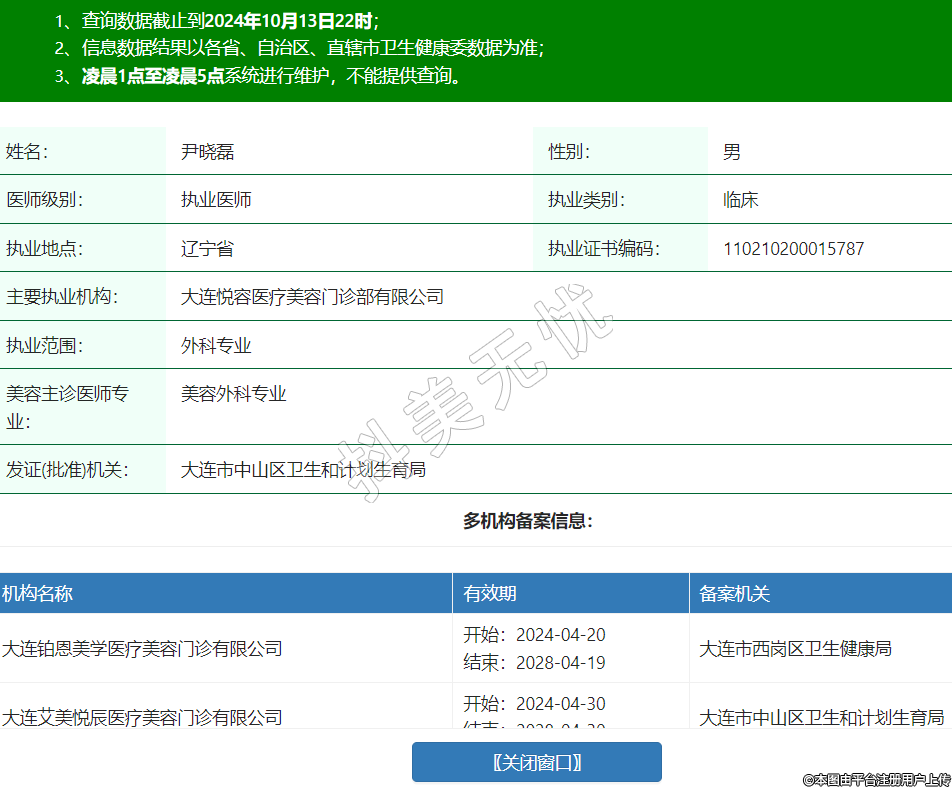 主要執(zhí)業(yè)機構(gòu):大連悅?cè)葆t(yī)療美容門診部有限公司