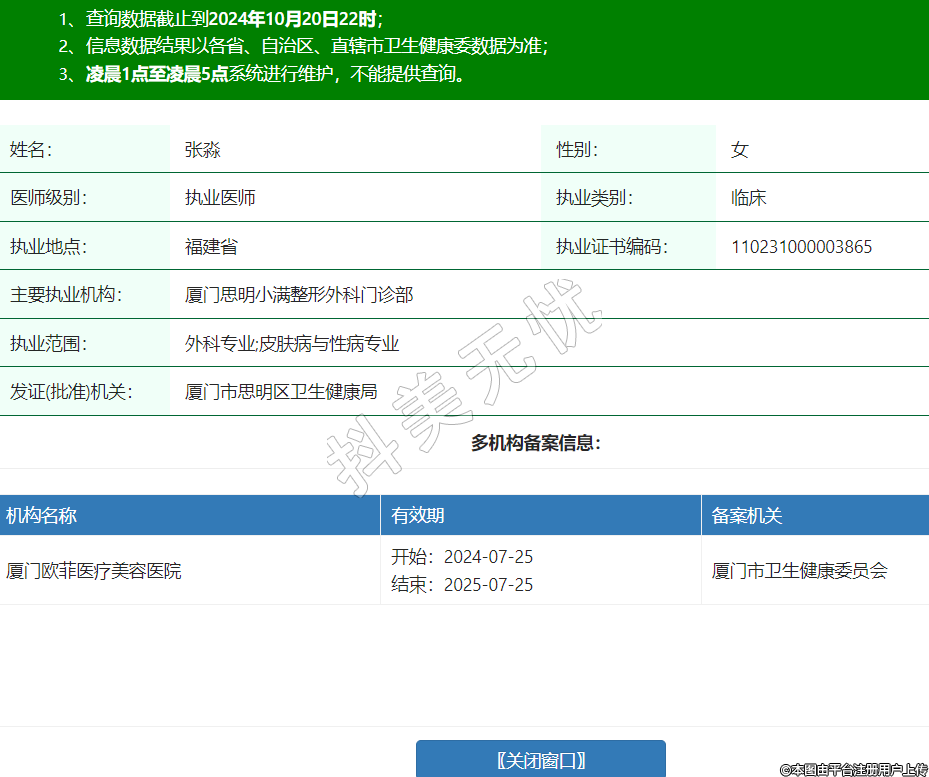 主要執(zhí)業(yè)機構(gòu):廈門思明小滿整形外科門診部
