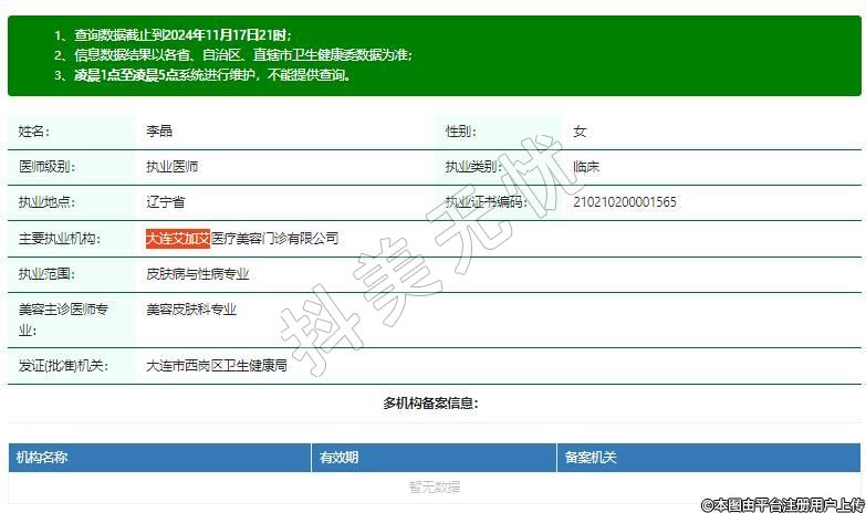 主要執(zhí)業(yè)機(jī)構(gòu):大連艾加艾醫(yī)療美容門診有限公司