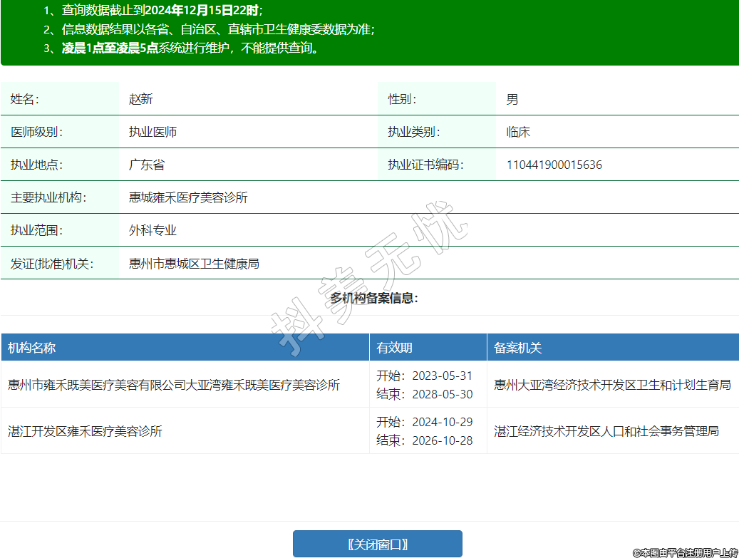 主要執(zhí)業(yè)機構(gòu):惠城雍禾醫(yī)療美容診所
