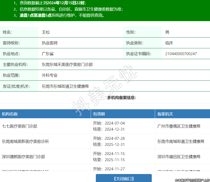 主要執(zhí)業(yè)機(jī)構(gòu):東莞東城禾美醫(yī)療美容門(mén)診部