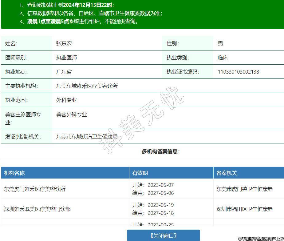 主要執(zhí)業(yè)機構(gòu):東莞東城雍禾醫(yī)療美容診所