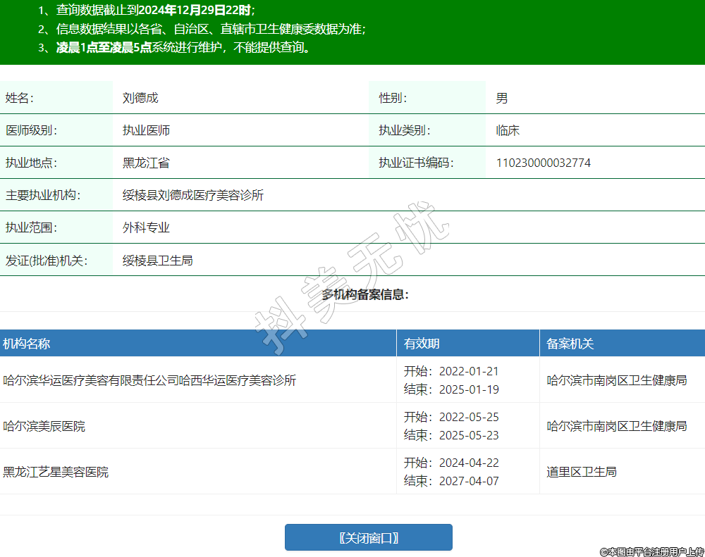 主要執(zhí)業(yè)機(jī)構(gòu):綏棱縣劉德成醫(yī)療美容診所