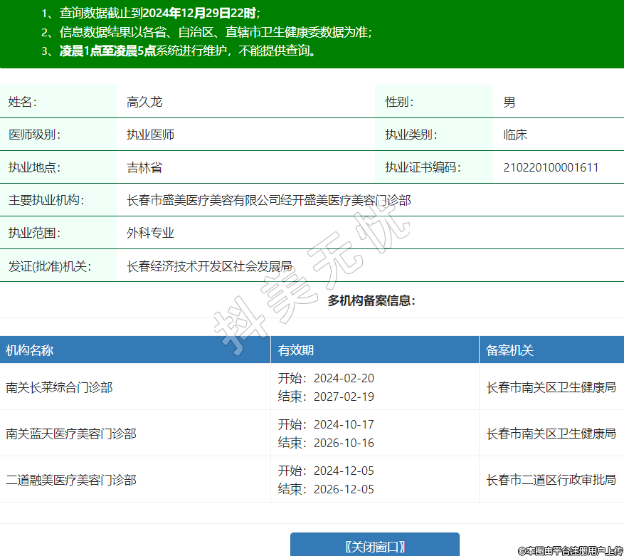主要執(zhí)業(yè)機構(gòu):長春市盛美醫(yī)療美容有限公司經(jīng)開盛美醫(yī)療美容門診部
