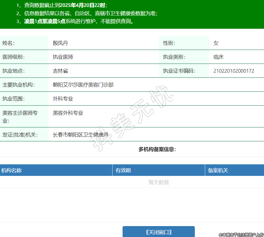 姓名:殷鳳丹性別:女醫(yī)師級(jí)別:執(zhí)業(yè)醫(yī)師執(zhí)業(yè)類別:臨床執(zhí)業(yè)地點(diǎn):吉林省執(zhí)業(yè)證書(shū)編碼:210220102000172主要執(zhí)業(yè)機(jī)構(gòu):朝陽(yáng)艾爾莎醫(yī)療美容門診部執(zhí)業(yè)范圍:外科專業(yè)美容主診醫(yī)師專業(yè):美容外科專業(yè)發(fā)證(批準(zhǔn))機(jī)關(guān):長(zhǎng)春市朝陽(yáng)區(qū)衛(wèi)生健康局