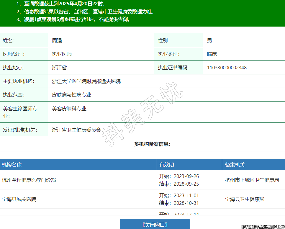 機構(gòu)名稱 有效期 備案機關 杭州全程健康醫(yī)療門診部 開始:2023-09-26結(jié)束:2028-09-25杭州市上城區(qū)衛(wèi)生健康局 寧海縣城關醫(yī)院 開始:2023-11-01結(jié)束:2028-10-31寧??h衛(wèi)生健康局 坤益(杭州)健康管理有限公司武林綜合門診部 開始:2023-12-14結(jié)束:2028-12-13杭州市拱墅區(qū)衛(wèi)生健康局 -