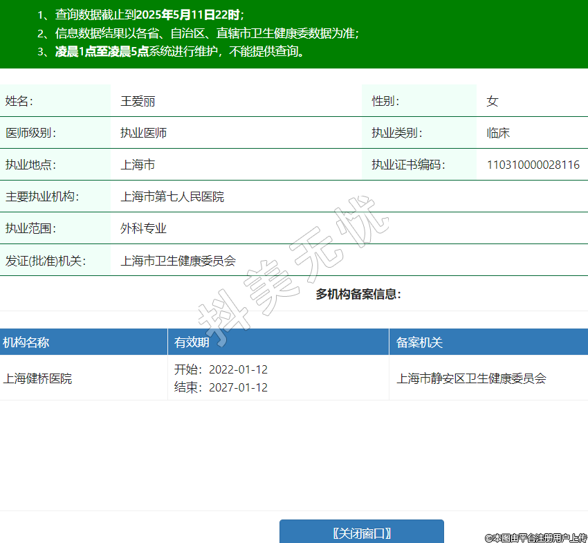 機(jī)構(gòu)名稱 有效期 備案機(jī)關(guān) 上海健橋醫(yī)院 開始:2022-01-12結(jié)束:2027-01-12上海市靜安區(qū)衛(wèi)生健康委員會 -