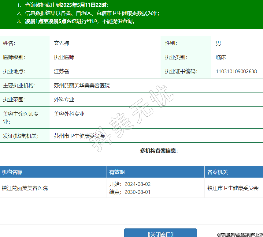 機(jī)構(gòu)名稱 有效期 備案機(jī)關(guān) 鎮(zhèn)江芘麗芙美容醫(yī)院 開(kāi)始:2024-08-02結(jié)束:2030-08-01鎮(zhèn)江市衛(wèi)生健康委員會(huì) -
