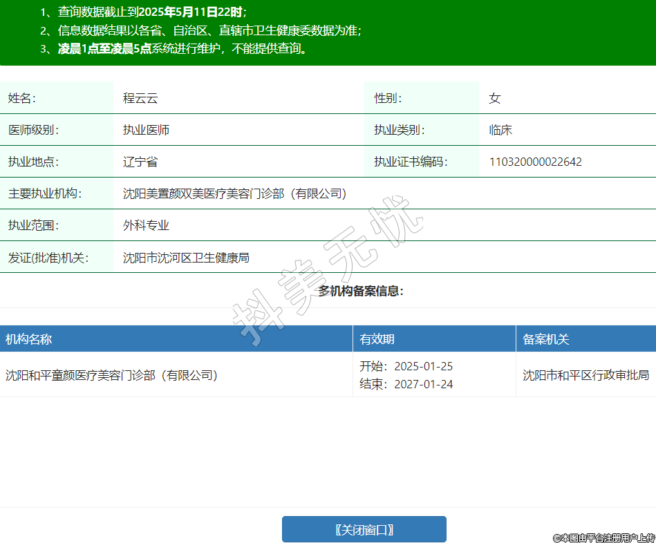 機(jī)構(gòu)名稱 有效期 備案機(jī)關(guān) 沈陽和平童顏醫(yī)療美容門診部(有限公司) 開始:2025-01-25結(jié)束:2027-01-24沈陽市和平區(qū)行政審批局 -