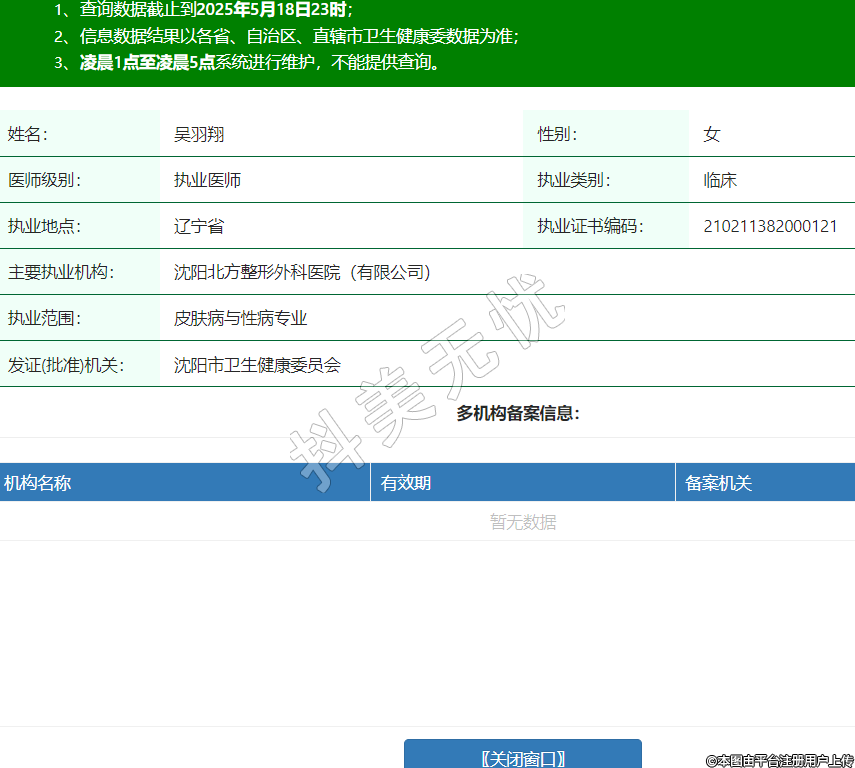 姓名:吳羽翔性別:女醫(yī)師級別:執(zhí)業(yè)醫(yī)師執(zhí)業(yè)類別:臨床執(zhí)業(yè)地點:遼寧省執(zhí)業(yè)證書編碼:210211382000121主要執(zhí)業(yè)機構:沈陽北方整形外科醫(yī)院(有限公司)執(zhí)業(yè)范圍:皮膚病與性病專業(yè)發(fā)證(批準)機關:沈陽市衛(wèi)生健康委員會