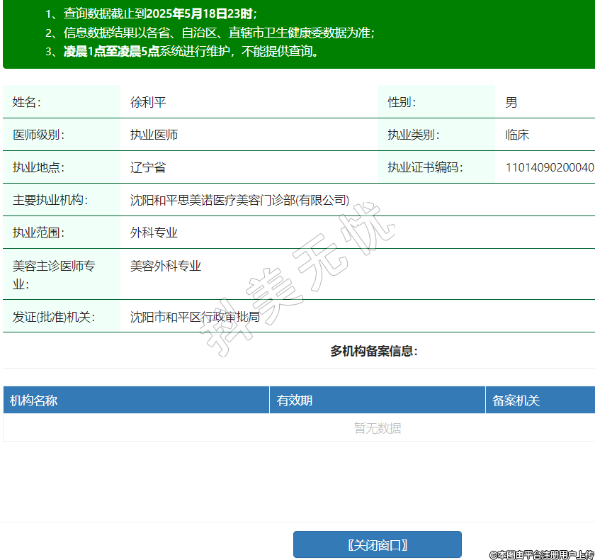 姓名:徐利平性別:男醫(yī)師級別:執(zhí)業(yè)醫(yī)師執(zhí)業(yè)類別:臨床執(zhí)業(yè)地點:遼寧省執(zhí)業(yè)證書編碼:110140902000401主要執(zhí)業(yè)機構(gòu):沈陽和平思美諾醫(yī)療美容門診部(有限公司)執(zhí)業(yè)范圍:外科專業(yè)美容主診醫(yī)師專業(yè):美容外科專業(yè)發(fā)證(批準)機關(guān):沈陽市和平區(qū)行政審批局