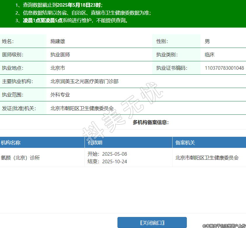 機構(gòu)名稱 有效期 備案機關(guān) 氫顏(北京)診所 開始:2025-05-08結(jié)束:2025-10-24北京市朝陽區(qū)衛(wèi)生健康委員會 -