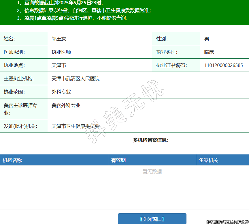 姓名:郭玉友性別:男醫(yī)師級別:執(zhí)業(yè)醫(yī)師執(zhí)業(yè)類別:臨床執(zhí)業(yè)地點:天津市執(zhí)業(yè)證書編碼:110120000026585主要執(zhí)業(yè)機構(gòu):天津市武清區(qū)人民醫(yī)院執(zhí)業(yè)范圍:外科專業(yè)美容主診醫(yī)師專業(yè):美容外科專業(yè)發(fā)證(批準)機關:天津市衛(wèi)生健康委員會