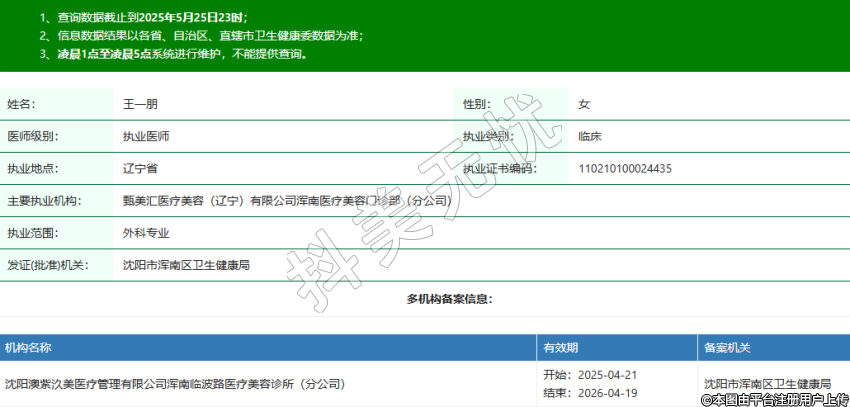 姓名:王一朋性別:女醫(yī)師級(jí)別:執(zhí)業(yè)醫(yī)師執(zhí)業(yè)類別:臨床執(zhí)業(yè)地點(diǎn):遼寧省執(zhí)業(yè)證書編碼:110210100024435主要執(zhí)業(yè)機(jī)構(gòu):甄美匯醫(yī)療美容(遼寧)有限公司渾南醫(yī)療美容門診部(分公司)執(zhí)業(yè)范圍:外科專業(yè)發(fā)證(批準(zhǔn))機(jī)關(guān):沈陽(yáng)市渾南區(qū)衛(wèi)生健康局