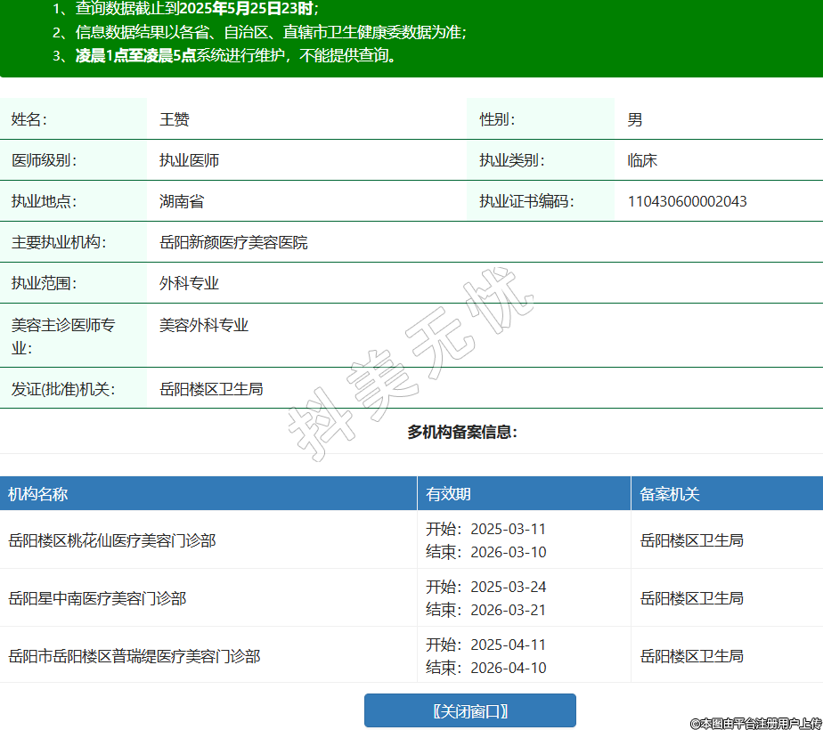 機構名稱 有效期 備案機關 岳陽樓區(qū)桃花仙醫(yī)療美容門診部 開始:2025-03-11結束:2026-03-10岳陽樓區(qū)衛(wèi)生局 岳陽星中南醫(yī)療美容門診部 開始:2025-03-24結束:2026-03-21岳陽樓區(qū)衛(wèi)生局 岳陽市岳陽樓區(qū)普瑞緹醫(yī)療美容門診部 開始:2025-04-11結束:2026-04-10岳陽樓區(qū)衛(wèi)生局 岳陽市南湖新區(qū)榆梵皙醫(yī)療美容門診部 開始:2025-04-18結束:2026-04-17岳陽市南湖新區(qū)衛(wèi)生健康局 -