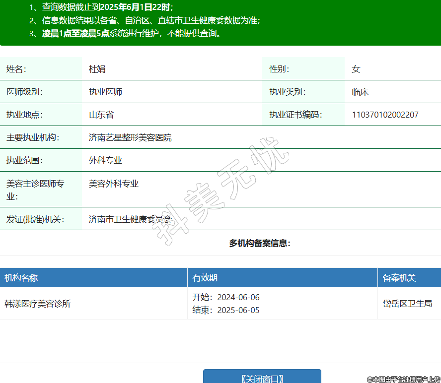 姓名:杜娟性別:女醫(yī)師級別:執(zhí)業(yè)醫(yī)師執(zhí)業(yè)類別:臨床執(zhí)業(yè)地點(diǎn):山東省執(zhí)業(yè)證書編碼:110370102002207主要執(zhí)業(yè)機(jī)構(gòu):濟(jì)南藝星整形美容醫(yī)院執(zhí)業(yè)范圍:外科專業(yè)美容主診醫(yī)師專業(yè):美容外科專業(yè)發(fā)證(批準(zhǔn))機(jī)關(guān):濟(jì)南市衛(wèi)生健康委員會多機(jī)構(gòu)備案信息: