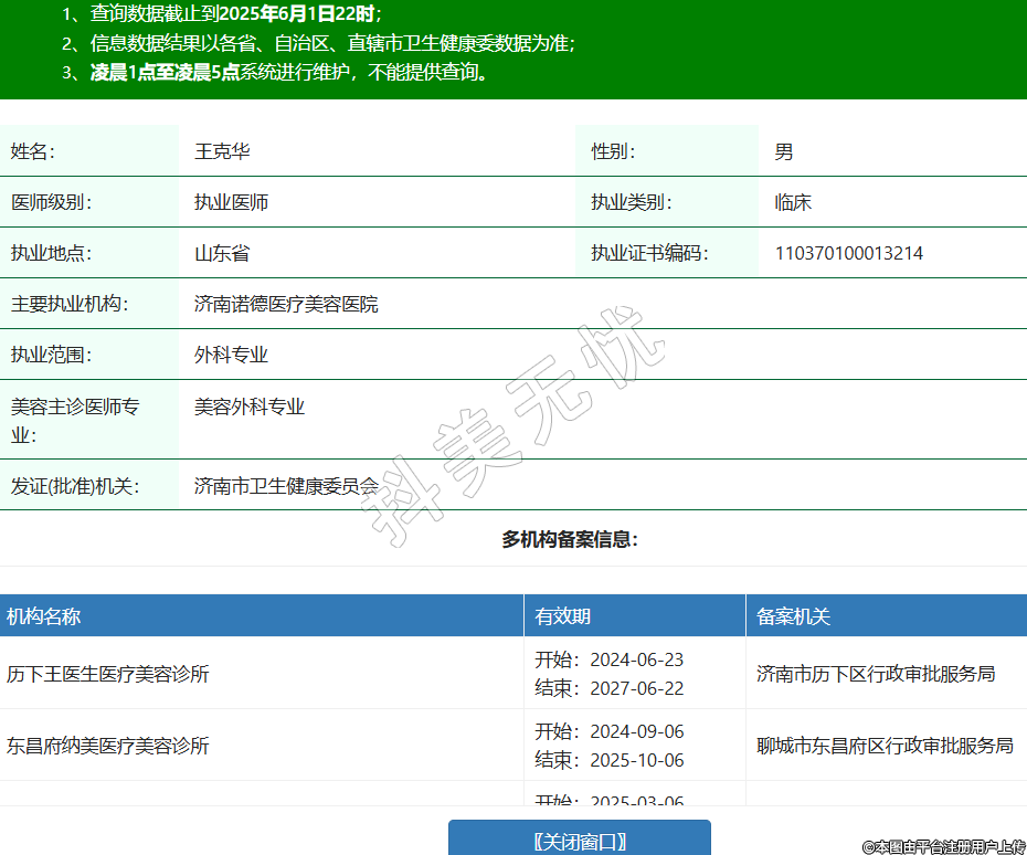 機構(gòu)名稱 有效期 備案機關(guān) 歷下王醫(yī)生醫(yī)療美容診所 開始:2024-06-23結(jié)束:2027-06-22濟南市歷下區(qū)行政審批服務局 東昌府納美醫(yī)療美容診所 開始:2024-09-06結(jié)束:2025-10-06聊城市東昌府區(qū)行政審批服務局 巨野縣北城醫(yī)院 開始:2025-03-06結(jié)束:2035-03-06巨野縣衛(wèi)生局 濟南卿之顏醫(yī)療服務有限公司歷城醫(yī)療美容診所 開始:2025-04-12結(jié)束:2026-04-12濟南市歷城區(qū)行政審批服務局 高新東瑞嘉合整形外科門診部 開始:2025-04-17結(jié)束:2026-04-17濟南高新技術(shù)產(chǎn)業(yè)開發(fā)區(qū)管理委員會 -