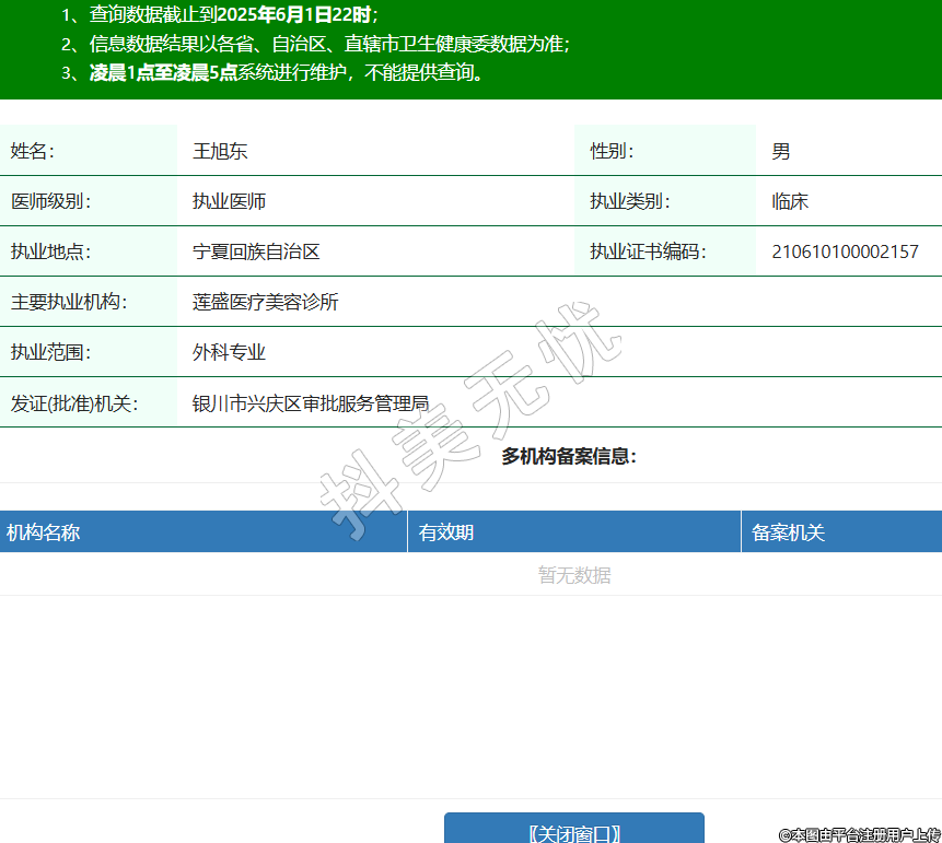 姓名:王旭東性別:男醫(yī)師級別:執(zhí)業(yè)醫(yī)師執(zhí)業(yè)類別:臨床執(zhí)業(yè)地點:寧夏回族自治區(qū)執(zhí)業(yè)證書編碼:210610100002157主要執(zhí)業(yè)機構:蓮盛醫(yī)療美容診所執(zhí)業(yè)范圍:外科專業(yè)發(fā)證(批準)機關:銀川市興慶區(qū)審批服務管理局