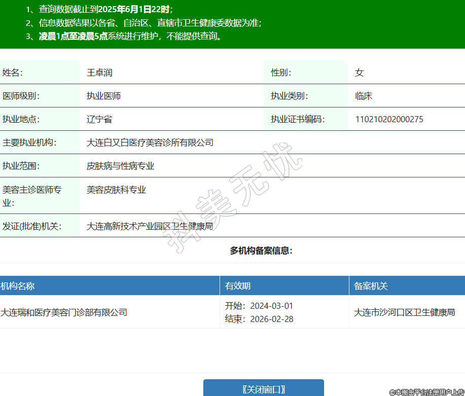 機(jī)構(gòu)名稱 有效期 備案機(jī)關(guān) 大連瑞和醫(yī)療美容門診部有限公司 開始:2024-03-01結(jié)束:2026-02-28大連市沙河口區(qū)衛(wèi)生健康局 -