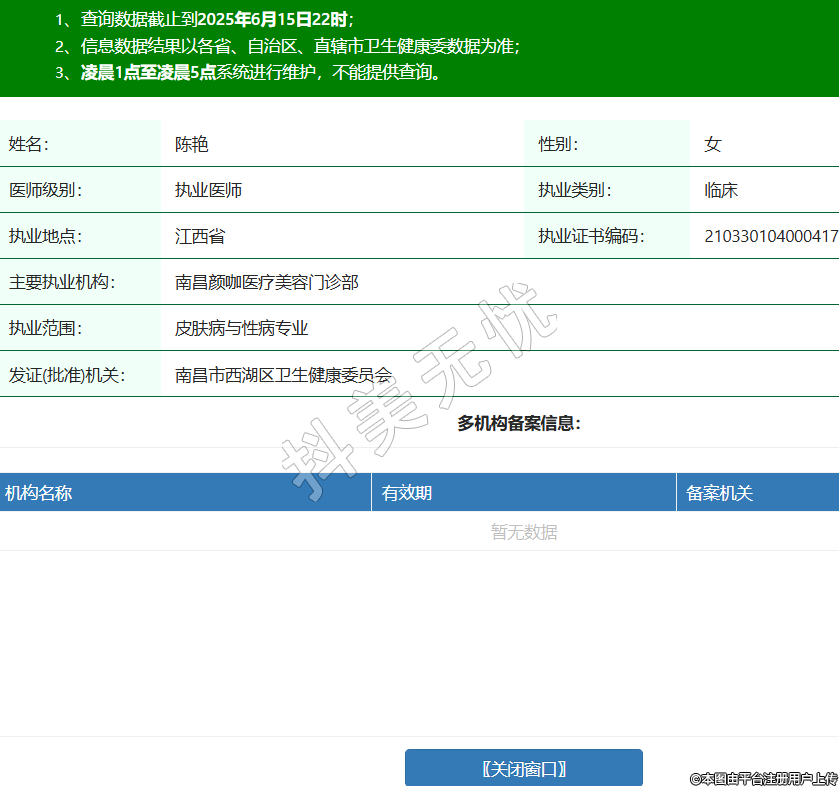 姓名:陳艷性別:女醫(yī)師級(jí)別:執(zhí)業(yè)醫(yī)師執(zhí)業(yè)類別:臨床執(zhí)業(yè)地點(diǎn):江西省執(zhí)業(yè)證書編碼:210330104000417主要執(zhí)業(yè)機(jī)構(gòu):南昌顏咖醫(yī)療美容門診部執(zhí)業(yè)范圍:皮膚病與性病專業(yè)發(fā)證(批準(zhǔn))機(jī)關(guān):南昌市西湖區(qū)衛(wèi)生健康委員會(huì)