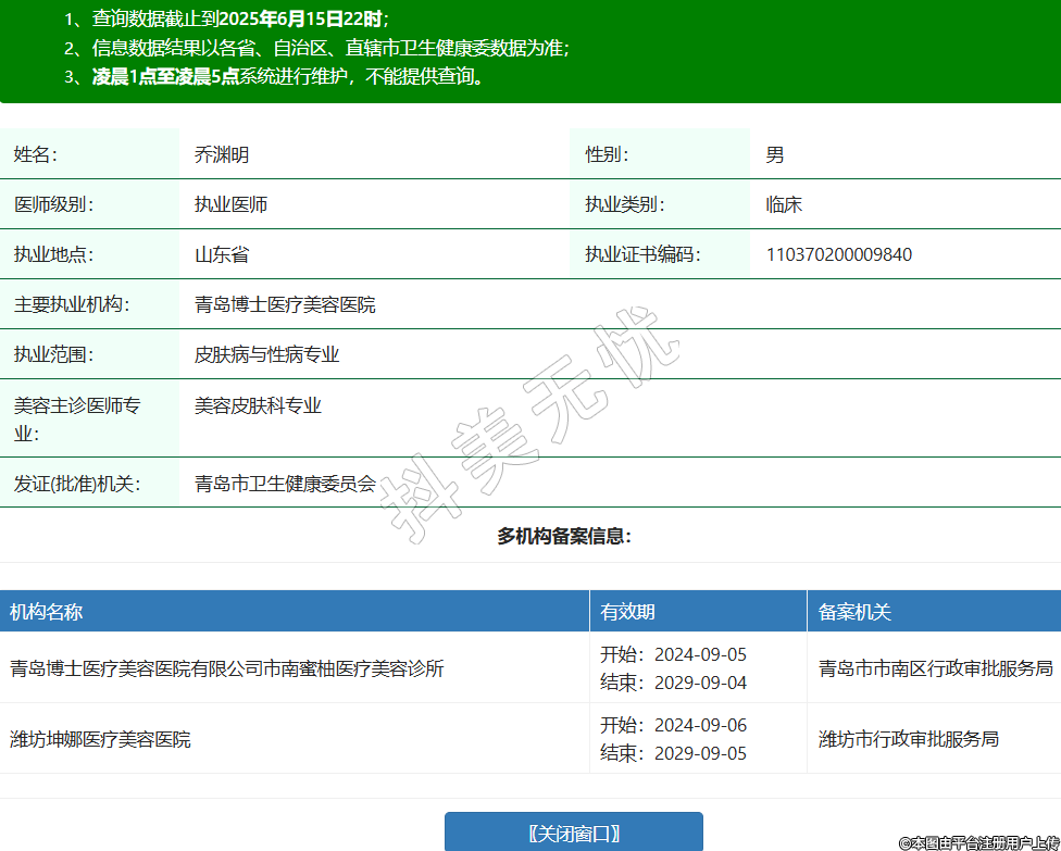 機構名稱 有效期 備案機關 青島博士醫(yī)療美容醫(yī)院有限公司市南蜜柚醫(yī)療美容診所 開始:2024-09-05結束:2029-09-04青島市市南區(qū)行政審批服務局 濰坊坤娜醫(yī)療美容醫(yī)院 開始:2024-09-06結束:2029-09-05濰坊市行政審批服務局 -