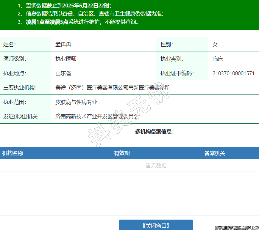 姓名:孟冉冉性別:女醫(yī)師級別:執(zhí)業(yè)醫(yī)師執(zhí)業(yè)類別:臨床執(zhí)業(yè)地點(diǎn):山東省執(zhí)業(yè)證書編碼:210370100001571主要執(zhí)業(yè)機(jī)構(gòu):美途(濟(jì)南)醫(yī)療美容有限公司高新醫(yī)療美容診所執(zhí)業(yè)范圍:皮膚病與性病專業(yè)發(fā)證(批準(zhǔn))機(jī)關(guān):濟(jì)南高新技術(shù)產(chǎn)業(yè)開發(fā)區(qū)管理委員會