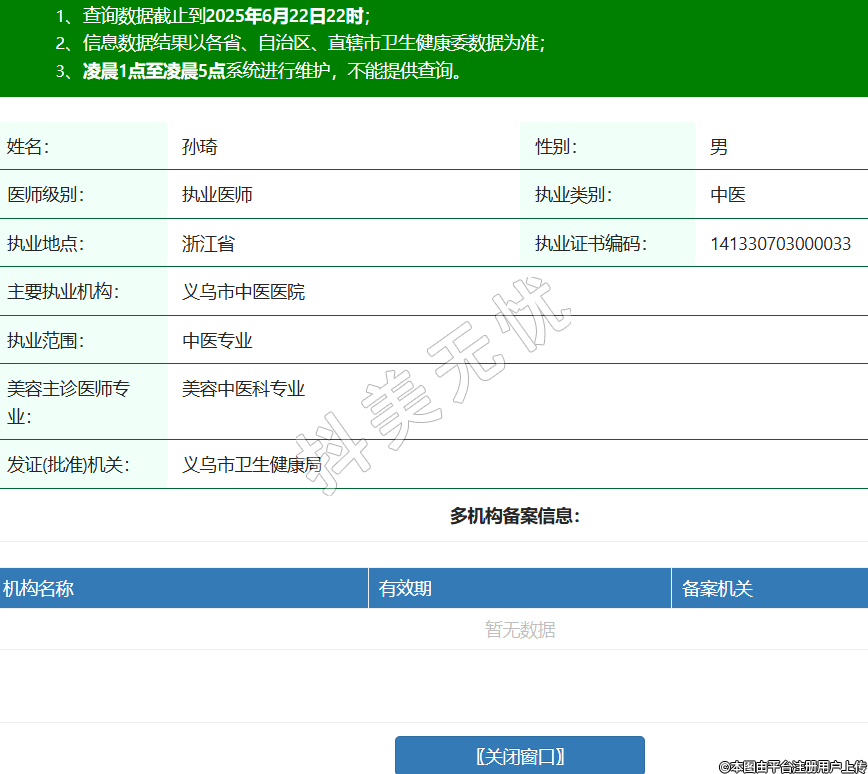 姓名:孫琦性別:男醫(yī)師級別:執(zhí)業(yè)醫(yī)師執(zhí)業(yè)類別:中醫(yī)執(zhí)業(yè)地點:浙江省執(zhí)業(yè)證書編碼:141330703000033主要執(zhí)業(yè)機構(gòu):義烏市中醫(yī)醫(yī)院執(zhí)業(yè)范圍:中醫(yī)專業(yè)美容主診醫(yī)師專業(yè):美容中醫(yī)科專業(yè)發(fā)證(批準)機關(guān):義烏市衛(wèi)生健康局