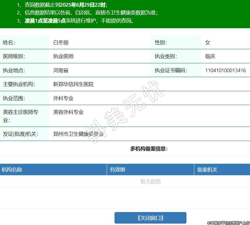 姓名:白冬麗性別:女醫(yī)師級別:執(zhí)業(yè)醫(yī)師執(zhí)業(yè)類別:臨床執(zhí)業(yè)地點:河南省執(zhí)業(yè)證書編碼:110410100013416主要執(zhí)業(yè)機構:新鄭華信民生醫(yī)院執(zhí)業(yè)范圍:外科專業(yè)美容主診醫(yī)師專業(yè):美容外科專業(yè)發(fā)證(批準)機關:鄭州市衛(wèi)生健康委員會
