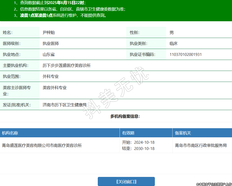 機(jī)構(gòu)名稱 有效期 備案機(jī)關(guān) 青島盛蓮醫(yī)療美容有限公司市南醫(yī)療美容診所 開始:2024-10-18結(jié)束:2030-10-18青島市市南區(qū)行政審批服務(wù)局 -