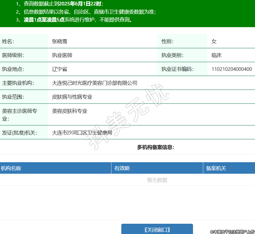 姓名:張曉雪性別:女醫(yī)師級(jí)別:執(zhí)業(yè)醫(yī)師執(zhí)業(yè)類別:臨床執(zhí)業(yè)地點(diǎn):遼寧省執(zhí)業(yè)證書編碼:110210204000400主要執(zhí)業(yè)機(jī)構(gòu):大連悅己時(shí)光醫(yī)療美容門診部有限公司執(zhí)業(yè)范圍:皮膚病與性病專業(yè)美容主診醫(yī)師專業(yè):美容皮膚科專業(yè)發(fā)證(批準(zhǔn))機(jī)關(guān):大連市沙河口區(qū)衛(wèi)生健康局
