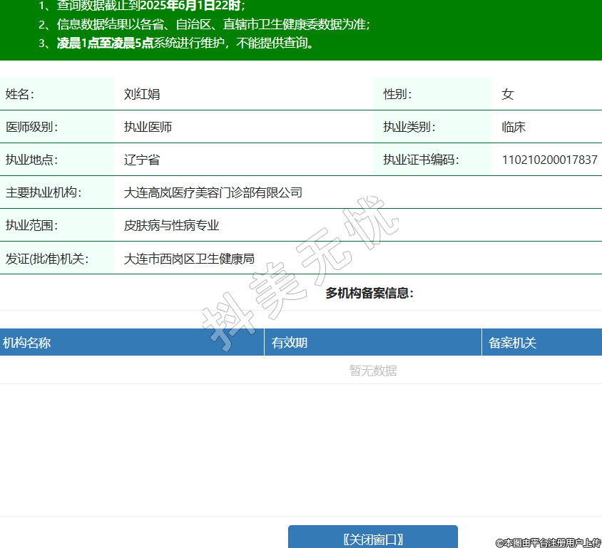 姓名:劉紅娟性別:女醫(yī)師級(jí)別:執(zhí)業(yè)醫(yī)師執(zhí)業(yè)類別:臨床執(zhí)業(yè)地點(diǎn):遼寧省執(zhí)業(yè)證書編碼:110210200017837主要執(zhí)業(yè)機(jī)構(gòu):大連高嵐醫(yī)療美容門診部有限公司執(zhí)業(yè)范圍:皮膚病與性病專業(yè)發(fā)證(批準(zhǔn))機(jī)關(guān):大連市西崗區(qū)衛(wèi)生健康局