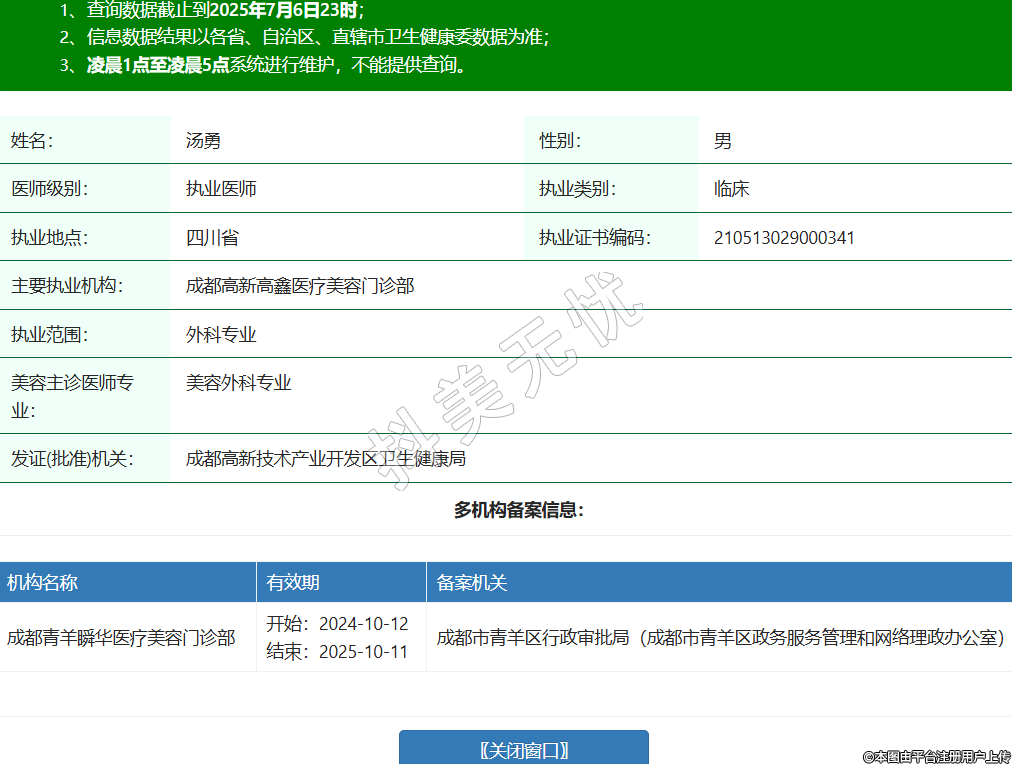 姓名:湯勇性別:男醫(yī)師級(jí)別:執(zhí)業(yè)醫(yī)師執(zhí)業(yè)類別:臨床執(zhí)業(yè)地點(diǎn):四川省執(zhí)業(yè)證書編碼:210513029000341主要執(zhí)業(yè)機(jī)構(gòu):成都高新高鑫醫(yī)療美容門診部執(zhí)業(yè)范圍:外科專業(yè)美容主診醫(yī)師專業(yè):美容外科專業(yè)發(fā)證(批準(zhǔn))機(jī)關(guān):成都高新技術(shù)產(chǎn)業(yè)開發(fā)區(qū)衛(wèi)生健康局多機(jī)構(gòu)備案信息: