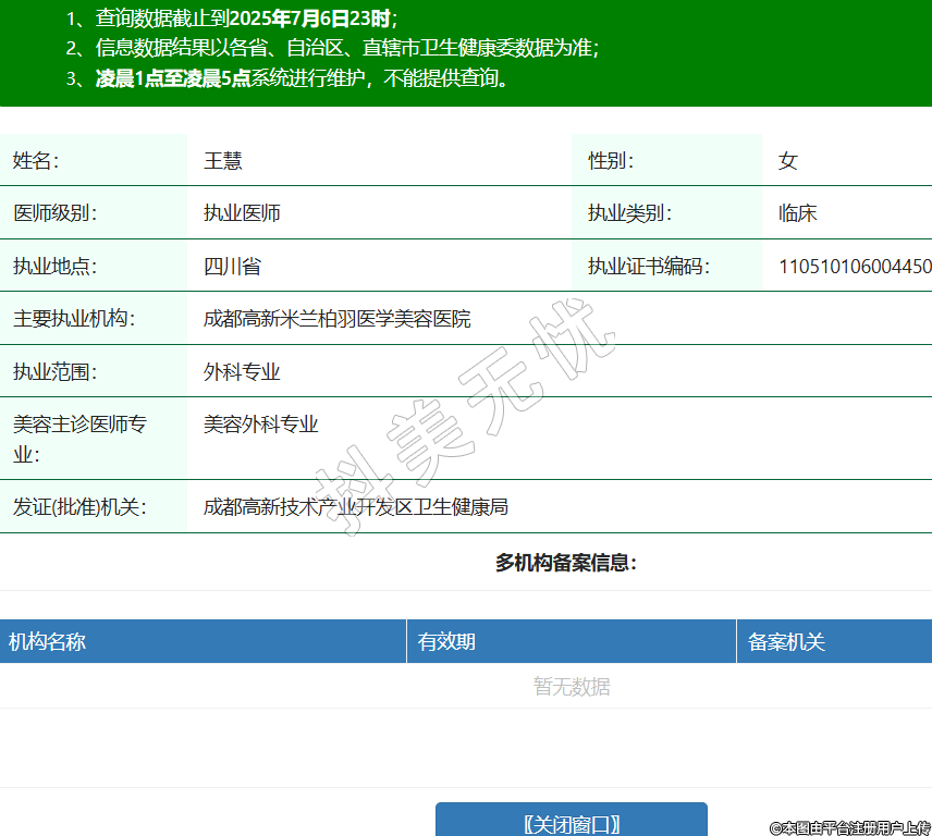 姓名:王慧性別:女醫(yī)師級別:執(zhí)業(yè)醫(yī)師執(zhí)業(yè)類別:臨床執(zhí)業(yè)地點:四川省執(zhí)業(yè)證書編碼:110510106004450主要執(zhí)業(yè)機構:成都高新米蘭柏羽醫(yī)學美容醫(yī)院執(zhí)業(yè)范圍:外科專業(yè)美容主診醫(yī)師專業(yè):美容外科專業(yè)發(fā)證(批準)機關:成都高新技術產(chǎn)業(yè)開發(fā)區(qū)衛(wèi)生健康局