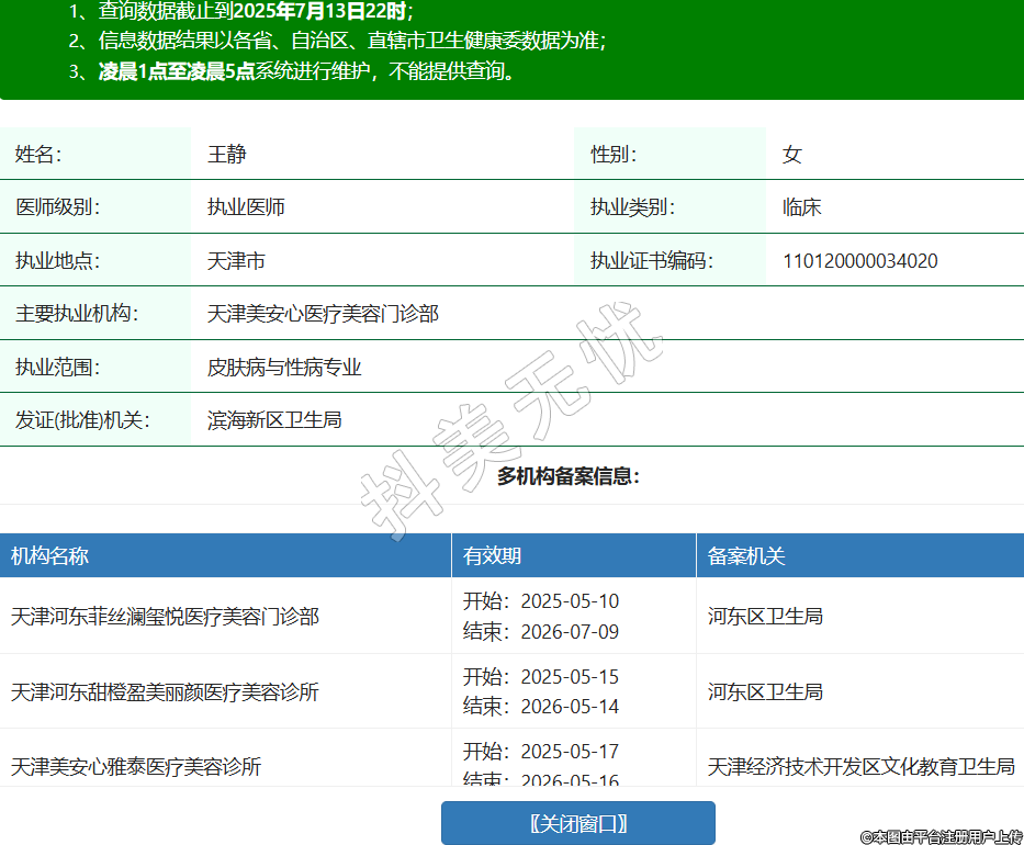 機構(gòu)名稱 有效期 備案機關(guān) 天津河東菲絲瀾璽悅醫(yī)療美容門診部 開始:2025-05-10結(jié)束:2026-07-09河東區(qū)衛(wèi)生局 天津河東甜橙盈美麗顏醫(yī)療美容診所 開始:2025-05-15結(jié)束:2026-05-14河東區(qū)衛(wèi)生局 天津美安心雅泰醫(yī)療美容診所 開始:2025-05-17結(jié)束:2026-05-16天津經(jīng)濟技術(shù)開發(fā)區(qū)文化教育衛(wèi)生局 天津河東伊頌璽悅醫(yī)療美容門診部 開始:2025-06-17結(jié)束:2026-06-16河東區(qū)衛(wèi)生局 -