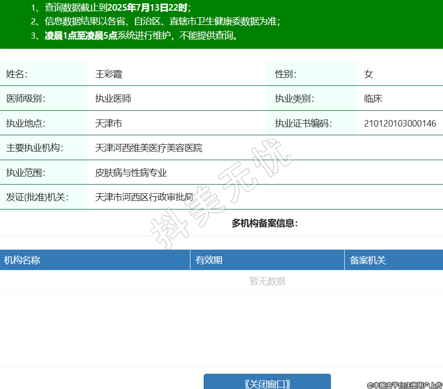 姓名:王彩霞性別:女醫(yī)師級別:執(zhí)業(yè)醫(yī)師執(zhí)業(yè)類別:臨床執(zhí)業(yè)地點:天津市執(zhí)業(yè)證書編碼:210120103000146主要執(zhí)業(yè)機構(gòu):天津河西維美醫(yī)療美容醫(yī)院執(zhí)業(yè)范圍:皮膚病與性病專業(yè)發(fā)證(批準(zhǔn))機關(guān):天津市河西區(qū)行政審批局