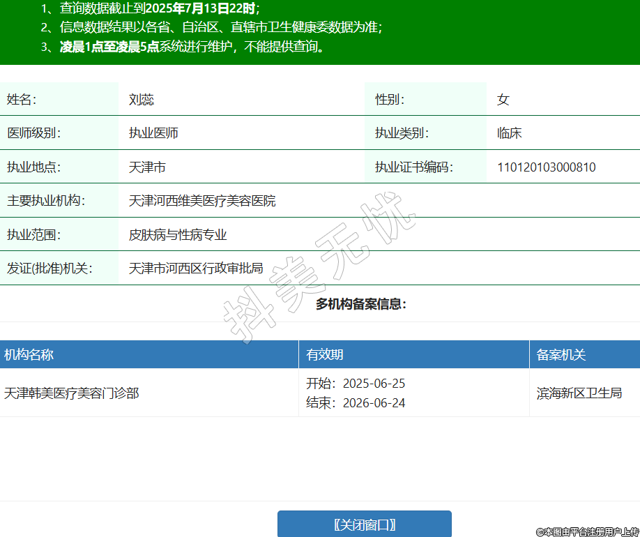機(jī)構(gòu)名稱 有效期 備案機(jī)關(guān) 天津韓美醫(yī)療美容門(mén)診部 開(kāi)始:2025-06-25結(jié)束:2026-06-24濱海新區(qū)衛(wèi)生局 -