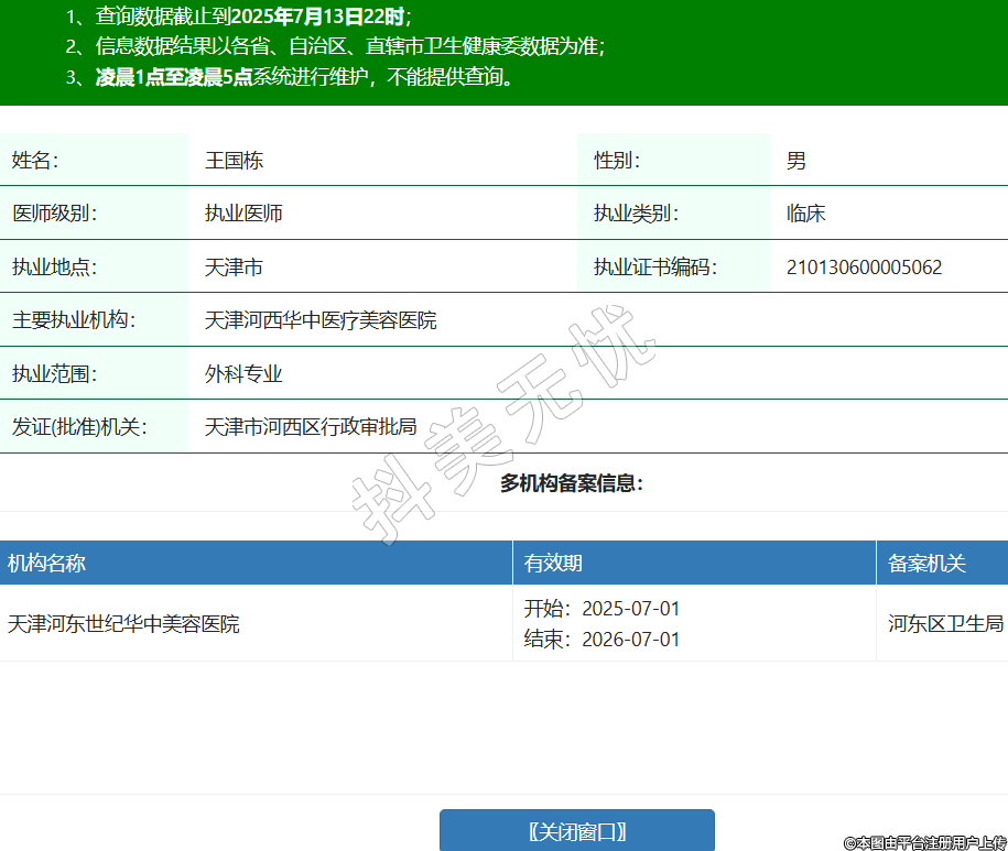 機(jī)構(gòu)名稱 有效期 備案機(jī)關(guān) 天津河?xùn)|世紀(jì)華中美容醫(yī)院 開(kāi)始:2025-07-01結(jié)束:2026-07-01河?xùn)|區(qū)衛(wèi)生局 -