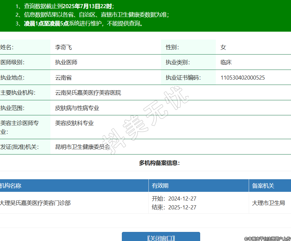 機(jī)構(gòu)名稱 有效期 備案機(jī)關(guān) 大理吳氏嘉美醫(yī)療美容門診部 開始:2024-12-27結(jié)束:2025-12-27大理市衛(wèi)生局 -